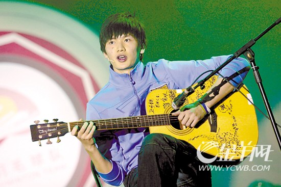 相比那些那富有節(jié)奏的律動,鮑春來選擇了安靜的自彈自唱。對木吉他彈奏有一定修為的小鮑一改去年的快樂形象,偕同師弟文凱登臺,情深款款地將《春天花會開》演繹得完美無瑕,引來臺下粉絲們的尖叫和掌聲。