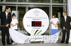中新網(wǎng)6月25日電 據(jù)共同社報(bào)道,昨天距2016年夏季奧運(yùn)會主辦城市揭曉還有100天,東京奧申委在東京國際論壇中心設(shè)置了一座顯示剩余天數(shù)的倒計(jì)時鐘。