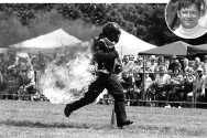 之后,工作人員打開一大桶汽油,把它澆在凱特的身上。激動人心的時刻來了,工作人員拿出打火機,現場所有的人都屏住了呼吸!稗Z!”一團熊熊燃燒的大火迅速吞噬了凱特。在觀眾的尖叫聲中,凱特拔腿就跑……他跑得越快,火就燒得越旺,看起來就像個“火球”在滾動。