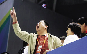 昨天的決賽來了大量的江蘇拉拉隊(duì),他們本想見證劉歡緣奪冠的激動時刻?墒茄矍鞍l(fā)生的這一切讓他們不敢相信,甚至極度氣憤。裁判改判后,拉拉隊(duì)“黑哨”聲已經(jīng)響徹體育館。