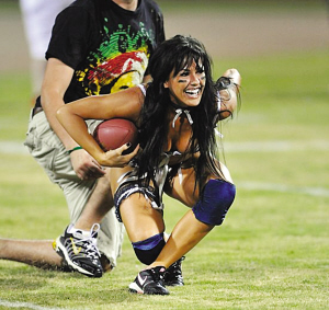 2009年,美國(guó)女子內(nèi)衣橄欖球大聯(lián)盟(簡(jiǎn)稱LFL)正式誕生,聯(lián)盟由10支球隊(duì)組成,球隊(duì)選拔隊(duì)員時(shí)不求最壯只求最靚,球員是清一色的性感美女。一群身材火爆的辣妹,穿著讓人“流鼻血”的性感內(nèi)衣在場(chǎng)上肉搏美式足球,讓人大飽眼福的運(yùn)動(dòng)今年9月4日開打,頂著金融危機(jī)的風(fēng)險(xiǎn),這項(xiàng)停辦兩年的比賽終于得以再度舉行。