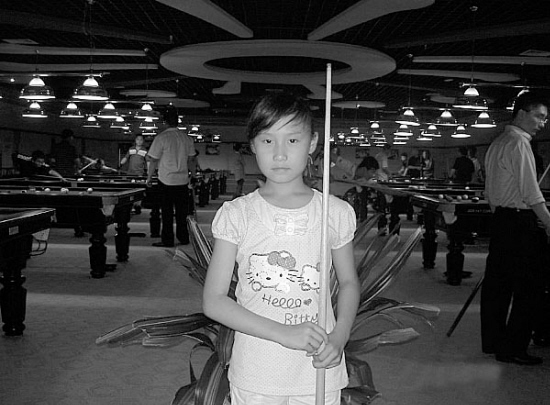 幾個月前,姜克軍在網(wǎng)上無意中發(fā)現(xiàn)了這次女子九球世錦賽的報名消息,“會外賽都是業(yè)余選手參加,打入前八名可以躋身決賽階段,就有機會跟潘曉婷那些世界高手過招,真是個難得的好機會。我跟孩子媽媽商量了好久才告訴姜藤,她聽了挺興奮,很想去沈陽參賽,我們就說只當帶她出來見世面,至于比賽成績根本不重要。不過,我的想法是讓女兒走職業(yè)路線,她的自然條件不錯!