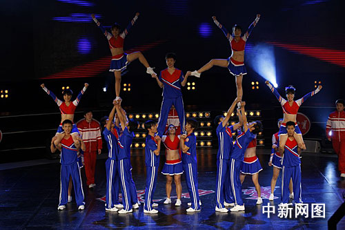 中新網(wǎng)廣州11月22日電 (記者 唐貴江)健力寶亞運(yùn)啦啦隊(duì)全國選拔賽廣州分賽區(qū)22日在廣州舉行,來自廣州體育學(xué)院等4支本地隊(duì)伍和海南、河南、廈門、南寧等地的8支啦啦隊(duì),分舞蹈和技巧兩組進(jìn)行了激烈的角逐,央視著名主持人韓喬生、體操世界冠軍莫慧蘭以及明星黃圣依等到場助陣。