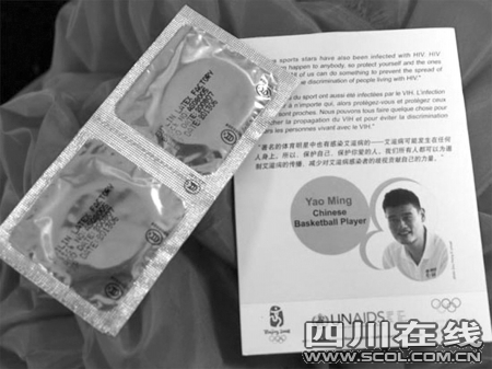 “奧運收藏第一人”趙曉凱在南京展示了這款特殊的奧運村避孕套,和普通款不同,這款避孕套不僅有英法文的介紹,還有舞動北京中國印的標志,更加獨特的是,外包裝上還有抗艾大使姚明的頭像(圖)。據(jù)悉,北京奧運期間,國際奧委會在奧運村放置了10萬避孕套預(yù)防艾滋病,姚明作為防艾滋病形象大使,他的肖像被印到了少量的“精裝版奧運村避孕套”上,在奧運后,這款避孕套成為奧運藏家熱追的藏品!皧W運收藏第一人”趙曉凱介紹,這是迄今為止他找到的第一款。趙曉凱表示,姚明版避孕套的拍賣所得,將用于救助只有14個月大的南京白血病患兒。(徐楊)