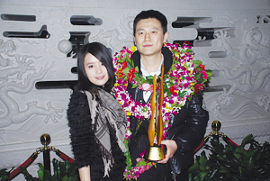 昨日下午,第14屆LG世界棋王賽冠軍孔杰從韓國首爾返回北京,孔杰的媽媽與體育總局棋牌中心主任劉思明、北京棋院副院長譚炎午等領(lǐng)導(dǎo)早早來到機(jī)場(chǎng)迎接。女友陳小勻也來到機(jī)場(chǎng),與載譽(yù)歸來的男友小秀了一把恩愛。