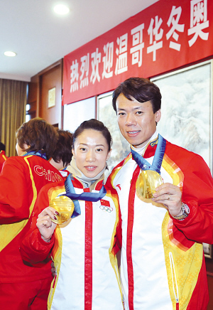 三金王王濛被里三層外三層地圍著向前挪,王濛懷里抱著一個(gè)頭戴白帽的小孩,遭到了閃光燈轟炸,知情者說,那是她的小侄子。趙宏博和申雪摟得緊緊的,“今天的歡迎儀式也讓我們一下子想起了四年前!鄙暄┱f。 (趙晨彥)