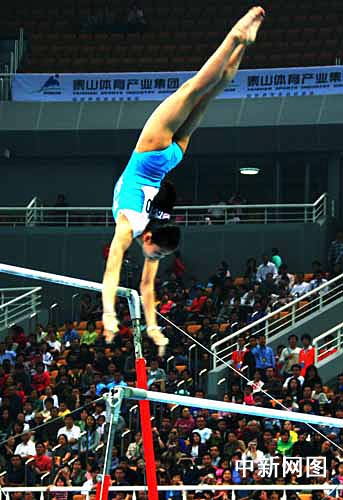 中新網(wǎng)濟(jì)南5月16日電(記者 胡洪林 王超)5月16日晚,山東省濟(jì)南奧體中心明星薈萃、人聲鼎沸,2009年全國體操錦標(biāo)賽進(jìn)行了前5個(gè)單項(xiàng)的決賽。在此經(jīng)過一番激烈的角逐,5枚金牌各得其所!耙唤恪背谭坪翢o懸念?yuàn)Z得跳馬冠軍,江鈺源一洗昨日比賽失誤之不幸,行云流水般出色完成整套高低杠動(dòng)作,喜笑顏開的捧走這一單項(xiàng)金牌。