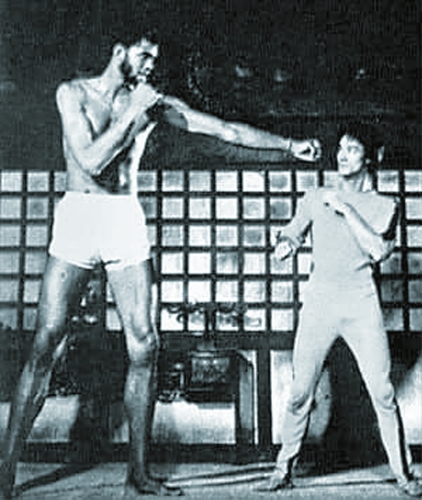 1972年深秋,李小龍開始構思、創(chuàng)作、投拍一部全新的功夫巨片,即他最后未完成的遺作《死亡游戲》!端劳鲇螒颉返膭∏槭且晃晃湫g高手,被迫到位于某地的一座五層高塔上去打塔闖關營救人質(zhì)。為此,李小龍?zhí)氐卣垇砹俗约旱暮糜选疤旃础辟Z巴爾。在第五層無名殿,就是由身高2.18米的賈巴爾把守。而身高只有1.72米的李小龍在最后一關飛腿踢倒“黑巨人”賈巴爾,成為這部未完成的影片中最經(jīng)典的鏡頭之一。
