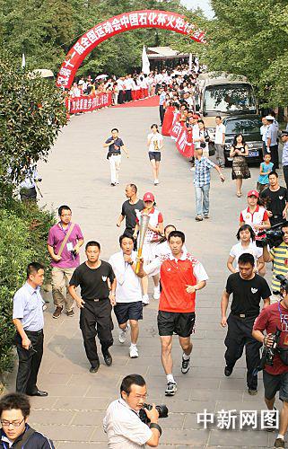 中新網(wǎng)成都8月31日電(陳典路)31日上午,全運會火炬經(jīng)云南傳遞到四川。取自泰山之巔的全運會圣火在地震災(zāi)區(qū)都江堰繼續(xù)傳遞。