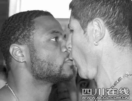 賽前,兩位火爆的拳王互相用口水戰(zhàn)為自己打氣,衛(wèi)冕拳王帕斯卡爾自信地喊道:“我不會花太長時間擊倒他,所以不要來晚了!辈P言要將對手布蘭科打成“血醬”。隨后,帕斯卡爾還挑釁地同布蘭科鼻對鼻的對峙,不過,由于兩人挨得太緊、過于“親密”,讓火藥味十足的對峙變成嘴對嘴的曖昧,讓人忍俊不禁。記者陳甘露