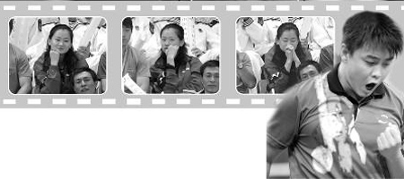 開賽后,王皓很快2:0領先,彭陸洋看得興高采烈。沒想到,馬琳迅速調(diào)整了狀態(tài),連追兩局。第五局,王皓8:10落后,彭陸洋嚇得閉上了眼睛,不敢看比賽。過了好一會兒,她才睜開眼睛,當?shù)弥杏演斍蚝螅@得非常難過。