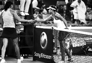 全場(chǎng)比賽,小德發(fā)出了10個(gè)ACE球,而哈內(nèi)斯庫(kù)一個(gè)都沒(méi)有,這也使得塞爾維亞人往往在關(guān)鍵時(shí)飆發(fā)球。次盤第2局,小德落后時(shí)又開始力拼一發(fā),球拍卻一下子扔了出去,全場(chǎng)嘩然。“我希望這樣的事故是最后一次發(fā)生,尤其是在這樣一項(xiàng)大賽中,這的確太不應(yīng)該了。”小德賽后笑著說(shuō),當(dāng)時(shí)手心有汗,球拍比較滑。