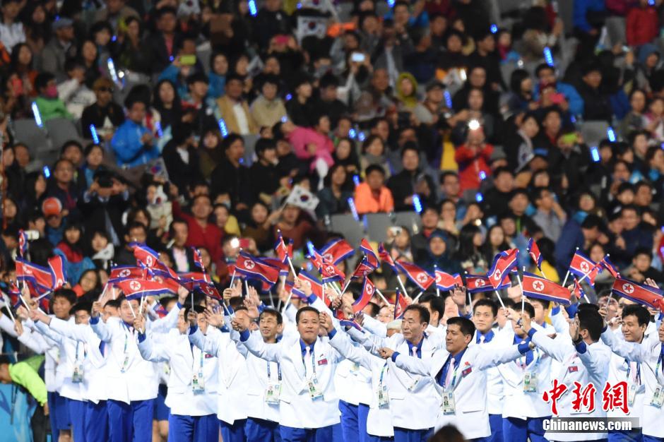 第17屆亞運(yùn)會(huì)于4日晚在仁川主體育場(chǎng)舉行閉幕式,朝鮮高級(jí)代表團(tuán)成員出席。當(dāng)?shù)貢r(shí)間晚8時(shí)10分許,當(dāng)朝鮮運(yùn)動(dòng)員入場(chǎng)時(shí), 黃炳誓等人起立向運(yùn)動(dòng)員揮手致意,體育場(chǎng)內(nèi)掌聲響起。