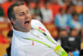 21日晚,中國男籃以76:66戰(zhàn)勝韓國,比賽中主帥鄧華德在場邊激情執(zhí)教。