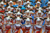 一群武術(shù)小羊亮相廣州國際體育演藝中心,為亞運男籃比賽中韓之戰(zhàn)暖場。