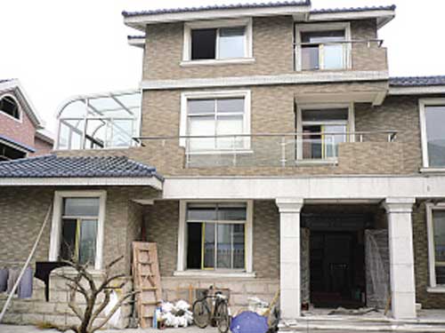 早就聽說丁俊暉家的豪宅要裝防彈玻璃,趕到現(xiàn)場記者第一時間找到了客廳的那扇大窗。據(jù)說,圖紙上原先預(yù)留的窗戶位置更大,全是落地窗,但考慮到安全因素,丁家還是決定把窗的位置往上抬了一點,但已非?捎^。記者走進(jìn)大窗仔細(xì)觀察了一番,玻璃確實很厚,“不是防彈的,因為窗子大,所以玻璃要厚一點,當(dāng)時是開玩笑說玻璃要厚到防彈才行,”照看屋子的沈大媽笑瞇瞇地告訴記者。