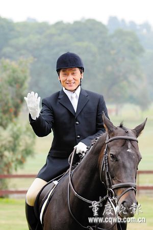 盡管成龍在眾人心目中的形象更多是一位功夫明星,不過追星族近期看到他穿起馬靴、戴起馬帽化身馬術(shù)騎士,代言今年夏天在中國香港舉行的奧運馬術(shù)賽!2008年在奧運馬術(shù)賽城市——香港見,”身著一身騎師裝束的成龍說,他同時在鏡頭前抓著一匹漂亮黑馬的韁繩。
