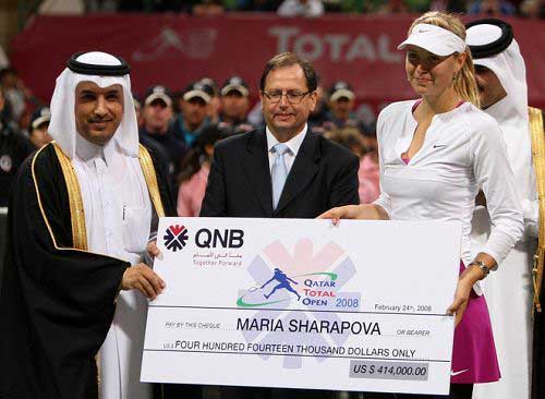 總獎(jiǎng)金250萬美元的WTA一級(jí)大賽多哈公開賽冠軍周一凌晨成為俄羅斯美少女莎拉波娃最新的戰(zhàn)利品,她在決賽中擊敗同胞茲維娜列娃,將自己今年的連勝紀(jì)錄擴(kuò)大到14場。