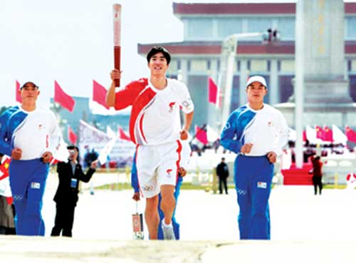 初春時(shí)節(jié),昨日的北京盡管陽(yáng)光明媚,但氣溫卻不高。站在天安門廣場(chǎng)上,陣陣涼風(fēng)拂過,天氣有些微涼。怕劉翔著涼,隨行人員建議他換上長(zhǎng)褲參加儀式,卻遭到劉翔拒絕。他解釋,這是夏季奧運(yùn)會(huì),火炬接力手應(yīng)該體現(xiàn)這一特點(diǎn)。而自己是代表中國(guó)向世界展示風(fēng)采,“穿著更應(yīng)該與主題相符。更何況,幾天前圣火在雅典進(jìn)行采集接力時(shí),火炬手穿的都是短款服裝,我應(yīng)該與他們保持統(tǒng)一!本瓦@樣,身著紅白雙色火炬手服裝,一身短打的劉翔手執(zhí)火炬,跑過長(zhǎng)安街、跑進(jìn)天安門,始終笑得陽(yáng)光燦爛。