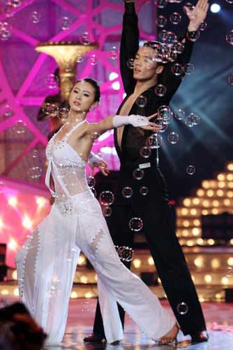 比賽一上場,戴菲菲就仿佛回到了當年的競技場,忘情地大舞帶操,一時間滿臺飄帶,看得臺下的觀眾美不勝收,在中段經(jīng)過了男舞伴倫巴的“過渡”,最后一段戴菲菲繼續(xù)演練看家本領(lǐng),最后以一個“一字開”的標準體操動作結(jié)束了整套舞蹈。結(jié)果幾位評審一致認為,戴菲菲唯美的帶操完全壓過了倫巴的風頭,正統(tǒng)國標舞的動作在整套舞蹈中反而是蹤影難尋,并且戴菲菲過于陶醉在自己的體操舞步中,使得男舞伴完全淪為了一片“綠葉”。好在評委們在打分上都還算客氣,最終戴菲菲以并列第三名的身份順利晉級了復賽。