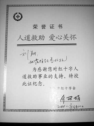 劉學(xué)根說,他晚上還要打電話告訴劉翔,自己在紅十字會被深深感動了!拔覜]想到有那么多人到這里來捐款,全都是默默無聞的,進(jìn)來捐了錢就走了,他們都很讓人感動!逼鋵(shí),老劉走進(jìn)紅十字會時,也沒張揚(yáng),默默排隊(duì),默默捐款,只是因?yàn)榫杩顢?shù)額比較大,又因?yàn)榫杩钊耸恰皠⑾琛,才被人認(rèn)了出來!按蠹叶际侵г疄(zāi)區(qū)的普通人,都是在盡自己一份力量”,老劉說。