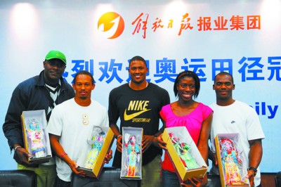 座談會上,還有北京奧運(yùn)會男子4×100米冠軍成員,牙買加隊(duì)的弗雷德和卡特,北京奧運(yùn)會女子400米金牌獲得者奧古魯格,雅典奧運(yùn)會和北京奧運(yùn)會兩屆女子三級跳冠軍姆邦哥。他們和奧利弗,都是第一批抵達(dá)上海參加黃金大獎(jiǎng)賽的運(yùn)動(dòng)員,此次受到解放日報(bào)報(bào)業(yè)集團(tuán)和解放日報(bào)領(lǐng)導(dǎo)的熱忱接待,并因收到了如穆桂英、孫悟空、趙云等京劇人偶,以及中國筷子等極具中國特色的禮物,而充滿驚喜。