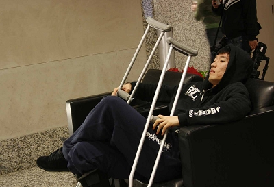 玩笑歸玩笑,劉翔有很多方面需要適應?巳R頓醫(yī)生關照他右腳那只鐵鞋,未來四到五周都必須穿在腳上!八X時都要戴著,怕撞到傷口!眲⑾柚,所有一切都是為了更快恢復,即便被別人稱作“鐵拐劉”,“一開始不太適應,還會差點摔倒,不過練一練就好一點,怎么撐拐杖以前不太會,現(xiàn)在技術掌握了,就好一些!