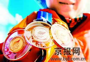 本屆大冬會(huì)獎(jiǎng)牌水晶鑲金,取自中國(guó)古代歷史上著名的美玉——“和氏璧”的造型。金牌由象征著尊榮華貴的“黃金”與象征和諧純潔的“水晶”兩種材質(zhì)組合而成,以黃金體現(xiàn)出在冰雪競(jìng)技運(yùn)動(dòng)中取得勝利的最高榮譽(yù),以水晶體現(xiàn)出冰雪運(yùn)動(dòng)的特色以及公平、公正、公開的體育競(jìng)爭(zhēng)價(jià)值觀。