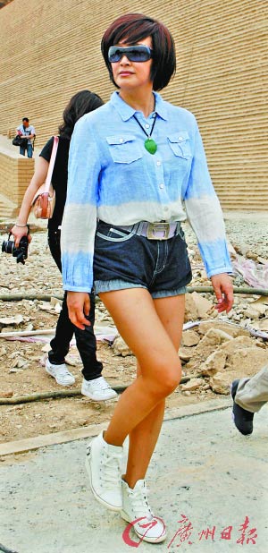 在將近三個小時的參觀過程中,劉曉慶也成為了乾陵一道風(fēng)景線。當(dāng)劉曉慶一身熱辣的運動裝出現(xiàn)在大家面前時,不少人都驚呼,“還是一副少女的感覺。”她的運動裝配以黑色超短裙,半截黑絲襪做點綴,還是顯出了比較清純的氣息。對此,劉曉慶回答道:“我風(fēng)格比較多,愛好也比較多,今天因為要走很多路,所以是這樣的裝扮。不知道今天會有媒體到場,不然我一定要好好打扮一番,不要素顏!