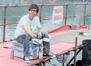 昨天下午,記者趕到蓮花池公園時(shí),只見陳楚生穿著黑色T恤,正坐在釣魚池旁邊全神貫注地盯著魚池。