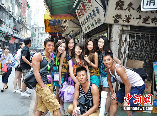 中新網(wǎng)韶關(guān)7月19日電(記者 李凌)7月19日上午,在廣東韶關(guān)進(jìn)行外景拍攝和采風(fēng)的2010年準(zhǔn)港姐、港男在游覽市區(qū)時(shí),受到當(dāng)?shù)厥忻駠^。陪同前往的08年港姐高海寧更是備受矚目,成市民眼中最靚佳麗。