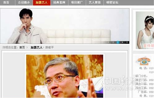 劉謙、梁朝偉、張曼玉、郎咸平這幾個名字你會想到什么?中國經(jīng)濟(jì)網(wǎng)記者今日在瀏覽某演藝經(jīng)紀(jì)網(wǎng)站發(fā)現(xiàn),平日里在媒體上以觀點獨(dú)到著稱、曾炮轟德隆系、痛斥國有企業(yè)MBO改革失敗、力推企業(yè)經(jīng)理人要講信托責(zé)任的香港中文大學(xué)教授郎咸平竟然出現(xiàn)在其中,與梁朝偉、劉謙、SHE組合等當(dāng)紅一樣也出現(xiàn)在“加盟藝人”之中。郎咸平教授曾在不同場合號稱自己要“上春晚”、“頂替趙本山”。難道真是邁出了這一步?