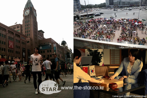 當(dāng)天金希澈登出3張照片,分別是站在北京街頭拍攝的本人瀟灑照,排成HEE字樣的中國(guó)粉絲們的照片,和一張貌似畫(huà)報(bào)的照片。