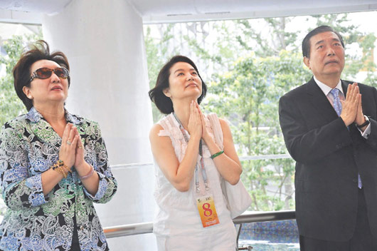 上海世博會(huì)開幕以來,臺(tái)灣館備受各界稱贊,昨天更出現(xiàn)2位來自臺(tái)灣的大明星,久違熒光幕的林青霞,在昔日影壇好友女星楊惠姍、導(dǎo)演張毅陪同下,參觀臺(tái)灣館,吸引場(chǎng)內(nèi)場(chǎng)外廣大粉絲的目光。