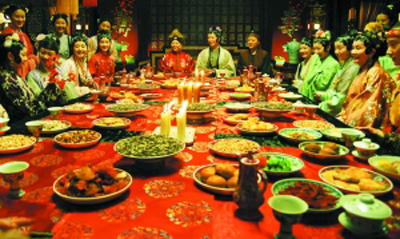 除了場(chǎng)景,新紅樓的人物造型也走寫意派。關(guān)于造型的問(wèn)題,美術(shù)設(shè)計(jì)葉錦添曾公開(kāi)表示,“如果完全寫實(shí),那么我們做出的《紅樓夢(mèng)》可能還是以前東西的延續(xù)。所以我們要?jiǎng)?chuàng)新,可能出來(lái)的效果沒(méi)有人會(huì)興奮,但我覺(jué)得應(yīng)該要堅(jiān)持一下!比~錦添透露他個(gè)人比較喜歡清代孫溫畫(huà)的整體效果,“畫(huà)中人物造型也帶有戲曲味,也非常紅樓夢(mèng),我拉了昆曲最浮面的那一層皮、那一層美感來(lái)做《紅樓夢(mèng)》。昆曲下面還有很多其他的東西都不要,只要那一層皮就已經(jīng)美得不得了了……”與備受爭(zhēng)議的額妝相比,新紅樓將久已失傳的珍貴昆曲名段復(fù)排,并在元春省親和寶釵生日宴兩段大戲中予以展現(xiàn),此舉獲得業(yè)界認(rèn)同。但昆曲作為背景音樂(lè)強(qiáng)化人物心理狀態(tài)并烘托氣氛,部分觀眾表示欣賞不了。