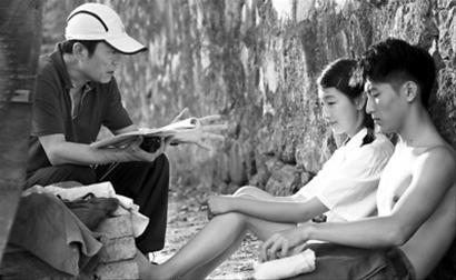 導(dǎo)演張藝謀在為兩位主演說戲