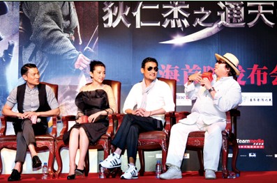 昨天,《狄仁杰之通天帝國》在滬舉行首映禮,導演徐克和武術指導洪金寶攜手劉德華、李冰冰、劉嘉玲、梁家輝、鄧超等主創(chuàng)亮相,為這部懸疑片“搖旗吶喊”!暗胰式堋眲⒌氯A接受了本報記者專訪。一面輕松地調(diào)侃片中同李冰冰的激情戲,一面又緊張地對香港電影現(xiàn)狀憂心忡忡。而他也在不遺余力地為香港電影培養(yǎng)年輕導演,自掏腰包成立“亞洲新星導”基金。談及家庭和未來,劉德華向記者透露,退休之后自己可能會追逐兒時夢想,轉(zhuǎn)行做一個魔術師。