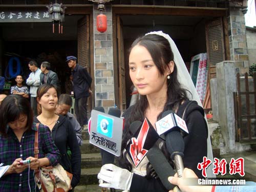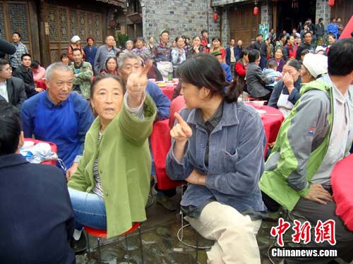 中新網(wǎng)汶川9月28日電(鄢銀嬋)28日中午,四川省汶川縣水磨鎮(zhèn)的萬(wàn)年臺(tái)戲臺(tái)廣場(chǎng)上正舉辦一場(chǎng)熱熱鬧鬧的婚禮,這是由著名導(dǎo)演楊亞洲執(zhí)導(dǎo)、倪萍、劉佩琦、蔣勤勤加盟的《大太陽(yáng)》劇組正在拍攝的一場(chǎng)戲。記者28日趕到水磨拍攝現(xiàn)場(chǎng)探班時(shí),正巧碰到了這喜慶的一幕。