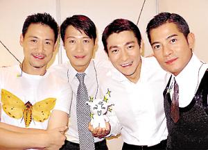 (左起)張學(xué)友、黎明、劉德華、郭富城四大天王齊聚真不容易