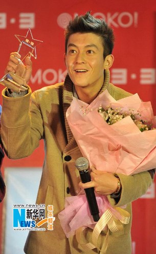 陳冠希10月28日在北京參加商業(yè)活動,他獲贈大捧鮮花人氣依舊居高不下,現(xiàn)場獻(xiàn)唱時他額頭冒青筋,拼命哄歌迷挽救人氣。還不忘大談與女友戀情自我炒作,并稱自己從未說出過退出或者離開娛樂圈。