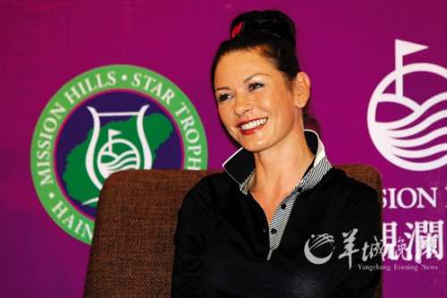 當(dāng)記者將凱瑟琳的邀請(qǐng)口信轉(zhuǎn)告給稍后亮相的任達(dá)華時(shí),他隨即擺出一副被電暈的樣子,“凱瑟琳·澤塔·瓊斯真是完美女人的典范,球技完美,身材更完美,打球的時(shí)候都快被她電暈了!