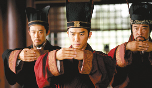 昨日,本報(bào)記者拿到一批《赤壁》官方劇照,從劇照上看無(wú)論是服裝還是化妝《赤壁》都秉承寫實(shí)風(fēng)格,其中金城武扮演的諸葛亮右手握羽扇,左手竟然拿著一只小烏龜,不知這只小龜是否拿來(lái)占卜使用?而侯勇扮演的魯肅和連環(huán)畫的形象非常相似,應(yīng)該會(huì)得到影迷的肯定。另?yè)?jù)《赤壁》制片張家振透露,金城武所有戲份已全部拍攝完畢,即使在11月17日的火燒烏林橋段有金城武的戲份,也已經(jīng)在10月4日前預(yù)先取鏡完畢,不會(huì)使用替身去補(bǔ)拍。