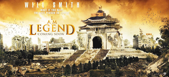 據(jù)臺灣《聯(lián)合報》報道,美國大片《我是傳奇》宣傳海報采取因地制宜策略,為讓世界各地的觀眾都感受到末日來臨的迫切危機(jī)感,出品該片的華納兄弟美國總公司挑選了香港、東京鐵塔、大阪市中心、倫敦大橋、首爾、巴黎鐵塔、雷克雅未克、馬德里西貝萊斯廣場與臺北中正紀(jì)念堂,呈現(xiàn)這些景點(diǎn)的毀壞荒涼情境。