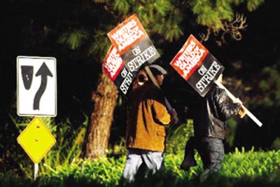 今天,那些無事可做的好萊塢從業(yè)人員可以重新忙碌起來,那些中斷拍攝的影視劇又可以重新開張。罷工以來,好萊塢至少有60部影視作品被迫停工,數(shù)以千計(jì)的工作人員賦閑在外,很多人因此丟掉了工作。
