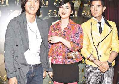 中新網(wǎng)3月19日電 鄭伊健與郭富城在電影《風云Ⅱ》記者會上,一同在臺中央落座,凸顯一哥地位。