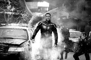 如果你帶著對好萊塢以往銀幕上的“超人”印象來與漢考克對比,那么一定會讓你大跌眼鏡,因為漢考克的出場不但邋遢得像一個流浪漢,他還是一個連飛行時都提著酒瓶子的十足的酒鬼,以及一個看到美女就會調(diào)戲一番的“流氓”。當(dāng)然你也不要以為他在飛行時有多么逍遙,因為他總是會碰到一些鳥類和飛機的“撞擊”,而且他的起飛和落地完全沒有以往“超人”們固定的POSE,在行俠仗義時還總是給公共設(shè)施帶來高達900萬美金經(jīng)濟損失的破壞。