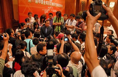 第17屆金雞百花電影節(jié)的新聞發(fā)布會(huì)昨日上午舉行。通常而言,這場(chǎng)發(fā)布會(huì)是電影節(jié)組委會(huì)通報(bào)電影節(jié)工作進(jìn)度,并接受媒體對(duì)于電影節(jié)以及評(píng)獎(jiǎng)工作提出意見(jiàn)和建議的“常規(guī)動(dòng)作”。但因?yàn)椤稘M城盡帶黃金甲》單方面在46年百花獎(jiǎng)歷史上首開(kāi)“退賽”先河,發(fā)布會(huì)忽而成為昨日最重要的新聞事件。而就在中國(guó)電影家協(xié)會(huì)常務(wù)副主席康健民“被迫宣告”《黃金甲》退賽之前,他正在闡述由于存在黑箱操作、惡意投票等問(wèn)題,近兩屆的大眾電影百花獎(jiǎng)才開(kāi)始“改革”,增設(shè)101位現(xiàn)場(chǎng)評(píng)委。如今,《黃金甲》又一次“鉆”了百花評(píng)選規(guī)則的漏洞,康健民承諾說(shuō):“我們考慮再修改評(píng)選規(guī)則,研究‘退出機(jī)制’!
