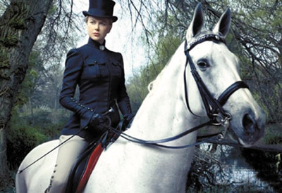 在澳洲趕牛,靠的是騎馬揚(yáng)鞭。在這方面,看似嬌滴滴的妮可其實(shí)一點(diǎn)都不像她扮演的英國(guó)貴婦莎拉那樣不在行,她的騎術(shù)甚至相當(dāng)不錯(cuò)。在片中,她脫下了貴婦裝,穿上了騎馬裝———襯衫、馬褲和長(zhǎng)靴雖然硬朗,卻奇異地讓妮可的身材更顯曲線。上千頭牛一起在草原上奔跑,這是《澳洲亂世情》中最令人震撼的場(chǎng)景之一,而妮可騎在馬上的嬌小身影就混雜其中。她大聲吆喝,策馬揚(yáng)鞭,混雜著汗水和塵土的臉蛋泛著紅光,成為國(guó)外觀眾心目中妮可最性感的造型。
