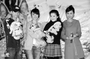 由泰國NGR公司出品的電影《尋找狗托邦》將于本周五起在內(nèi)地上映,昨日,為片中流浪狗配音的演員楊紫、楊若兮、金銘、張一山、葉靜亮相京城,為影片首映造勢。楊若兮更是牽來自家的雪拉瑞上演“人狗一家親”的好戲。