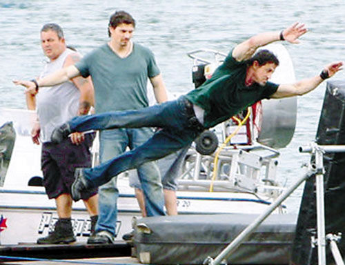 西爾維斯特·史泰龍自編自導(dǎo)自演的新作《敢死隊(duì)》昨日曝光了片場(chǎng)照。現(xiàn)年62歲的史泰龍依舊以硬漢造型亮相,上演了一出狂追水上飛機(jī)的動(dòng)作戲。堅(jiān)持親自上陣不用替身的他說(shuō):“我必須沿著碼頭去追趕那架水上飛機(jī),然后跳進(jìn)去,那種感覺(jué)就像被卡里特娜颶風(fēng)吸了進(jìn)去! (王文)